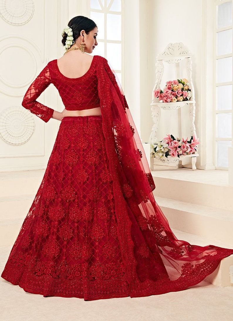 Embroidered Semi Stitched Lehenga Choli (Red)