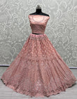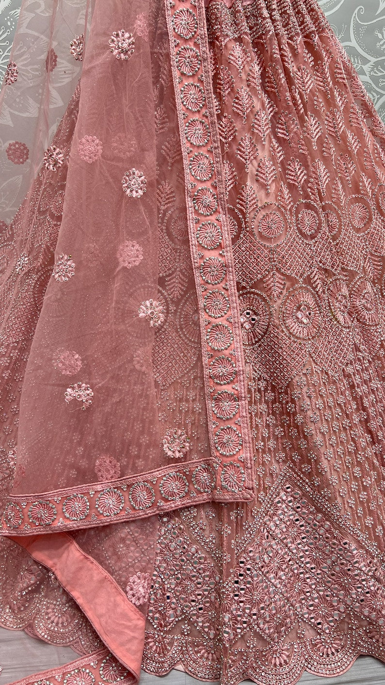 Pink and gold-toned embroidered lehenga choli with dupatta, sequinned