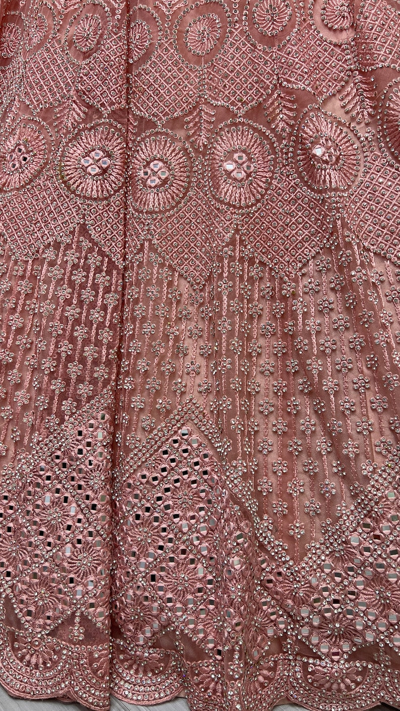 Embroidered Sequinned Net Semi-Stitched Lehenga & Unstitched Blouse With Dupatta