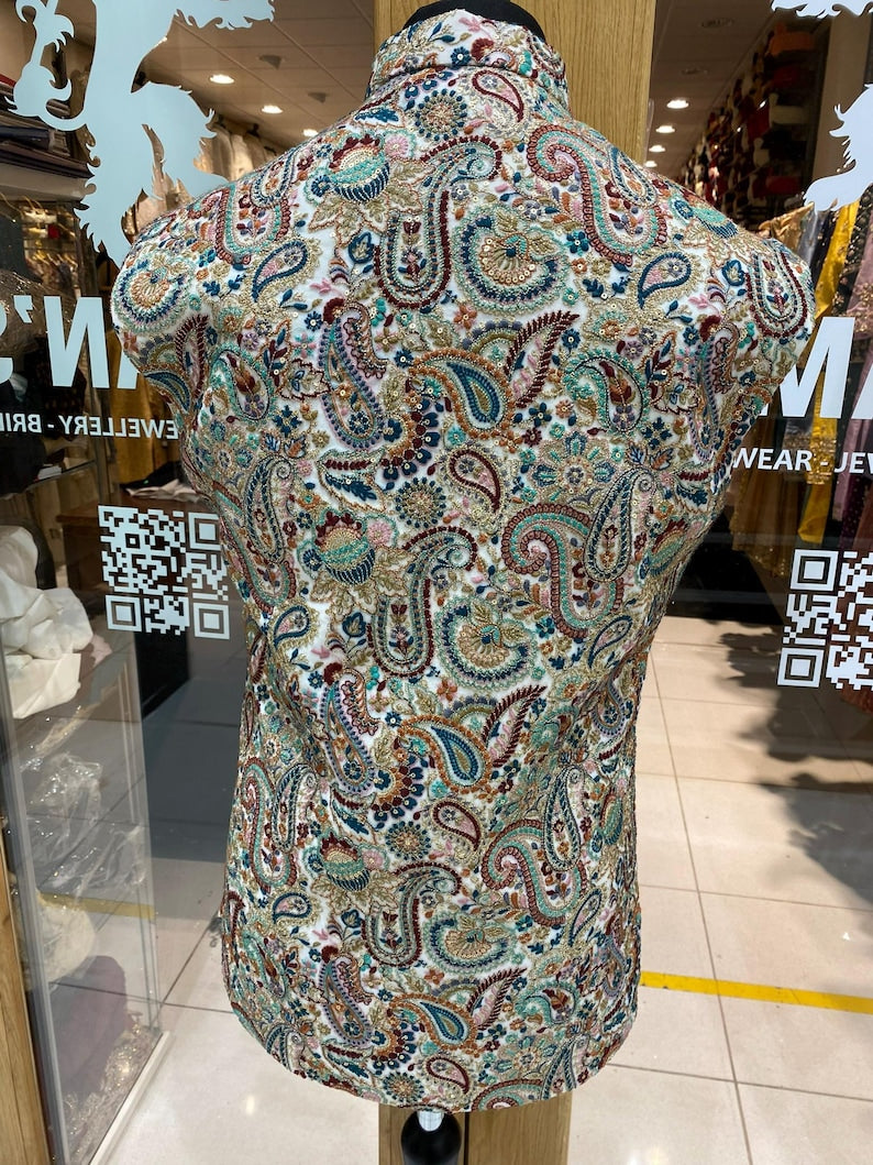 Designed with precision, the waistcoat features intricate Indian embroidery, reflecting the rich cultural diversity and artistry of India. The premium fabric ensures a comfortable fit, making it suitable for various occasions, from formal gatherings to cultural events.