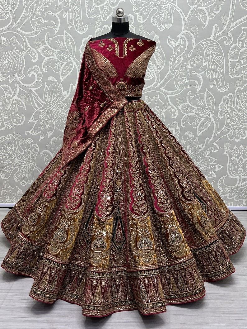 Exclusive Designer Heavy Velvet Lehenga Choli, Beautiful Blouse Piece With Soft Net Dupatta, Wedding & Reception Outfit Wear Lehenga Choli