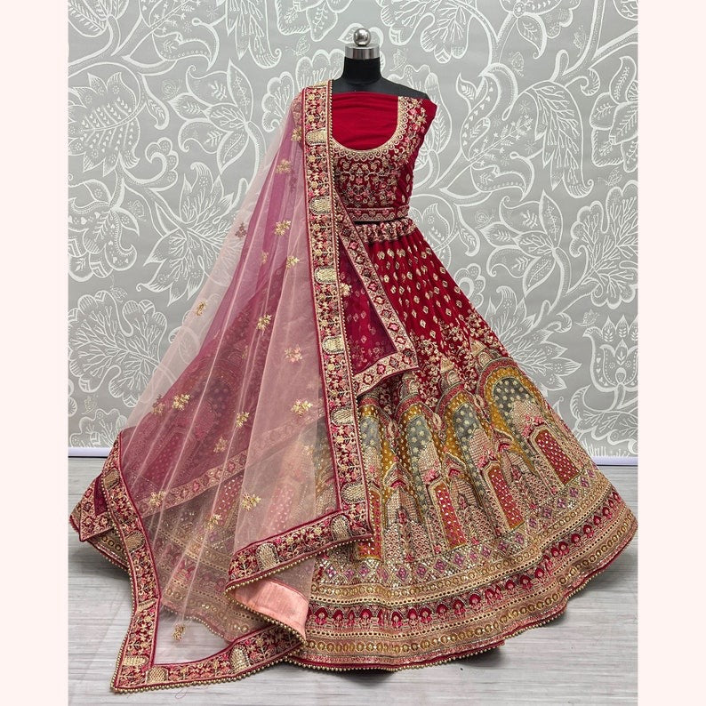 Exclusive Designer Heavy Velvet Lehenga Choli, Beautiful Blouse Piece With Soft Net Dupatta, Wedding & Reception Outfit Wear Lehenga Choli