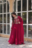Faux Blooming Georgette With Attractive embroidered Work Red Gown