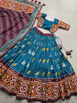 Name : Firoji Color Floral And Patola Print With Foil Work Tussar Silk Lehenga Choli