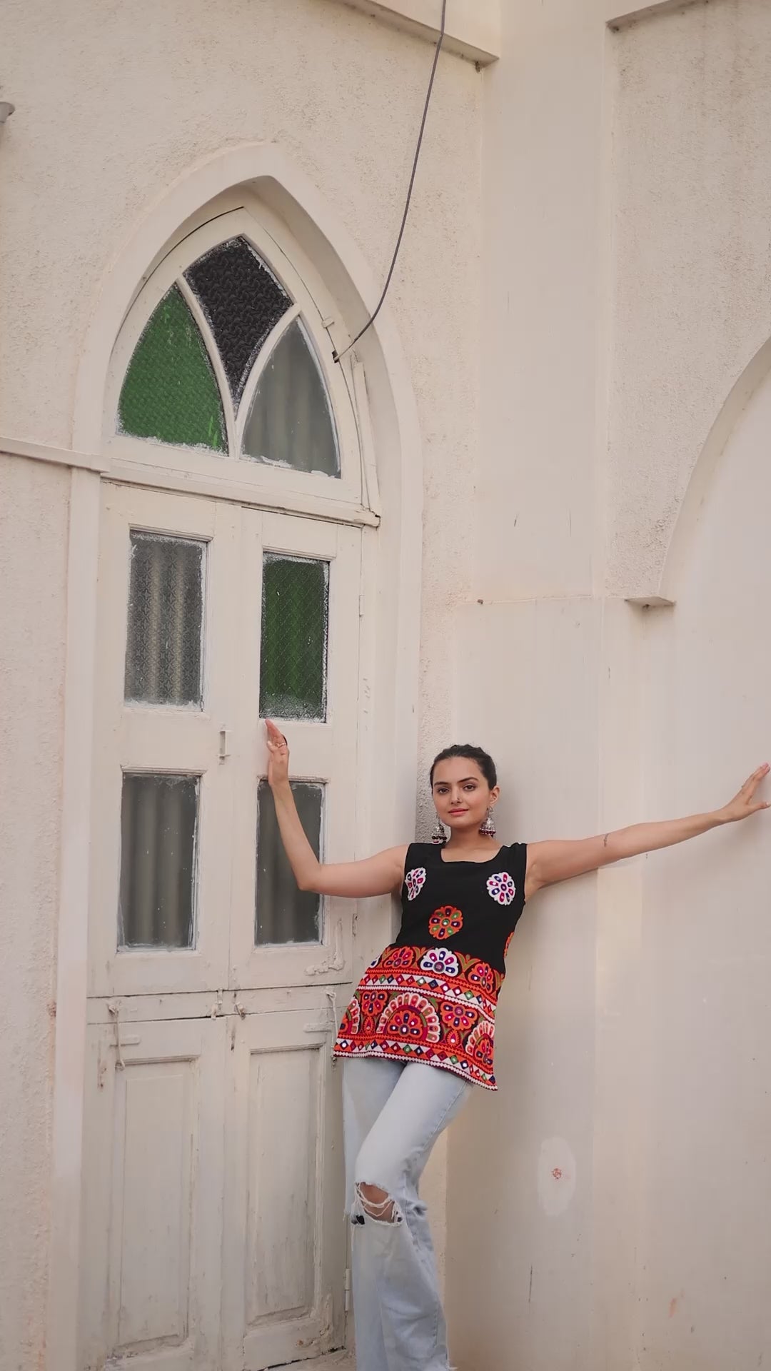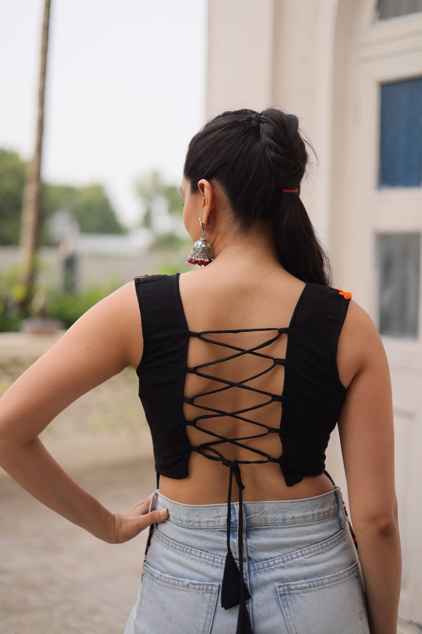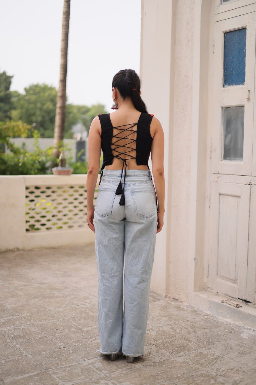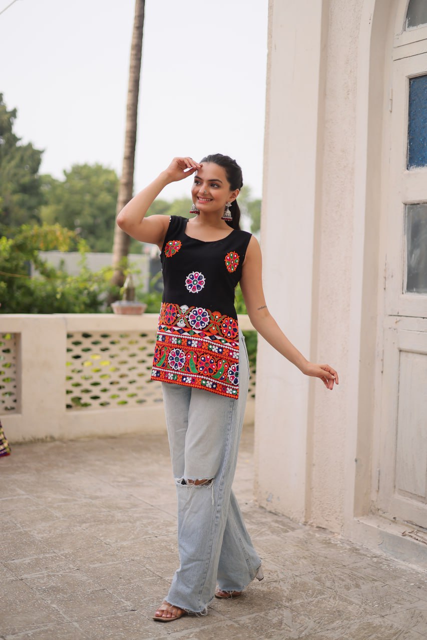 Georgette with Kutchi Gamthi Work Black kurti