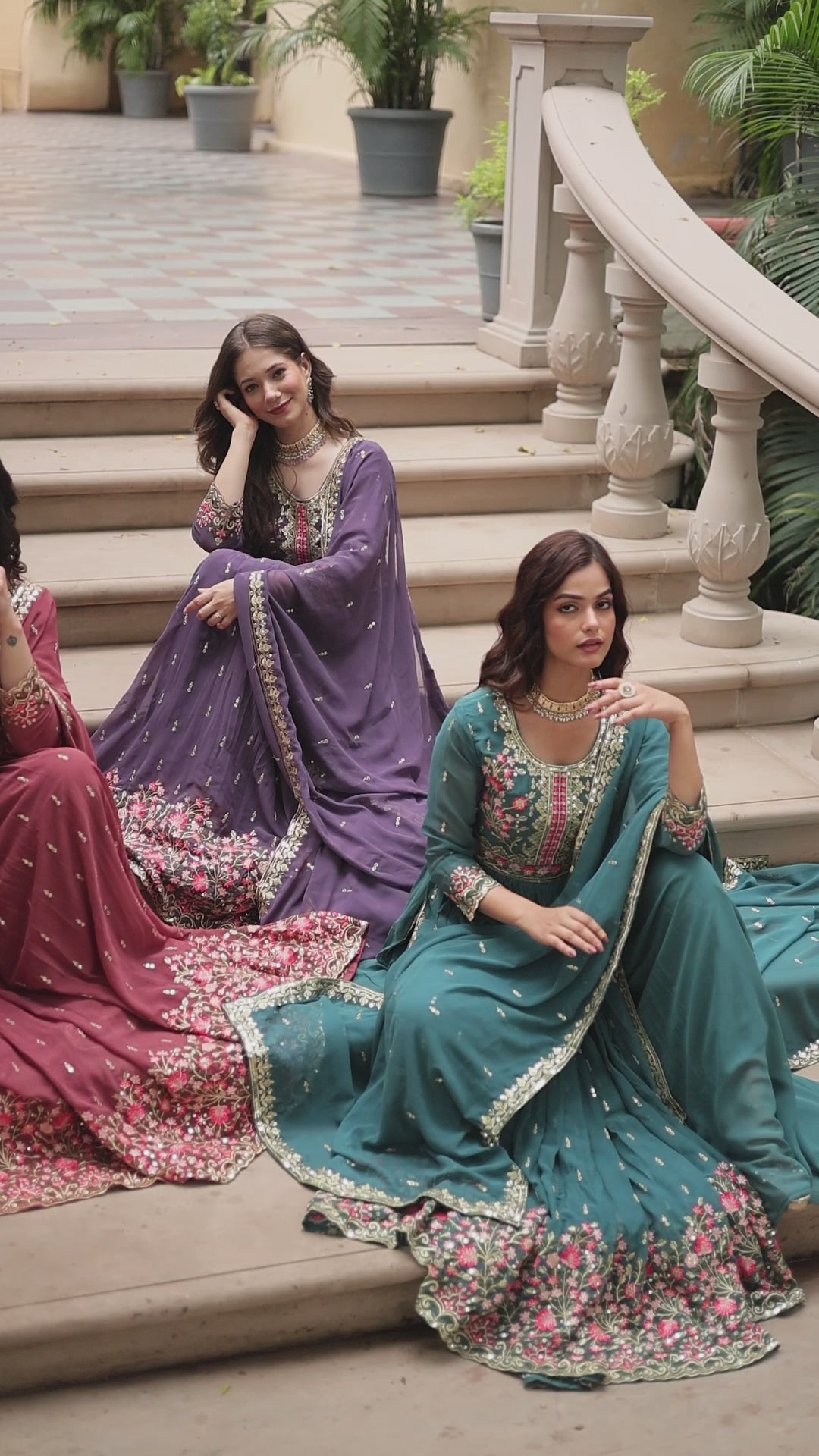 Get ready to shine with these stunning outfit Made from Faux Georgette And Sequins Embroidered Work