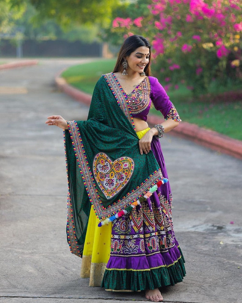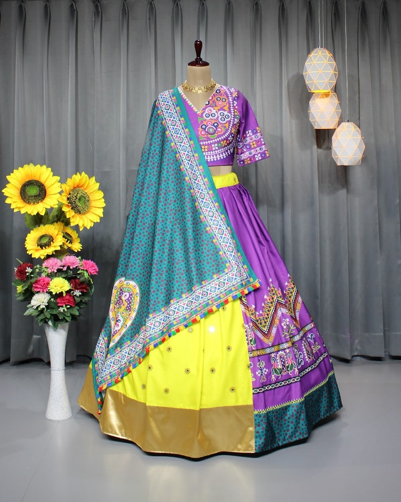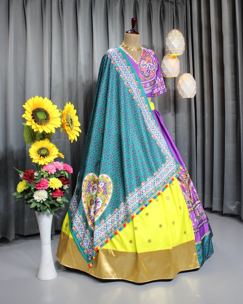 Glamorous Heavy Flair Lehenga Choli Set, Fancy Digital Prints & Real Mirror Work