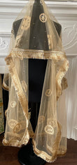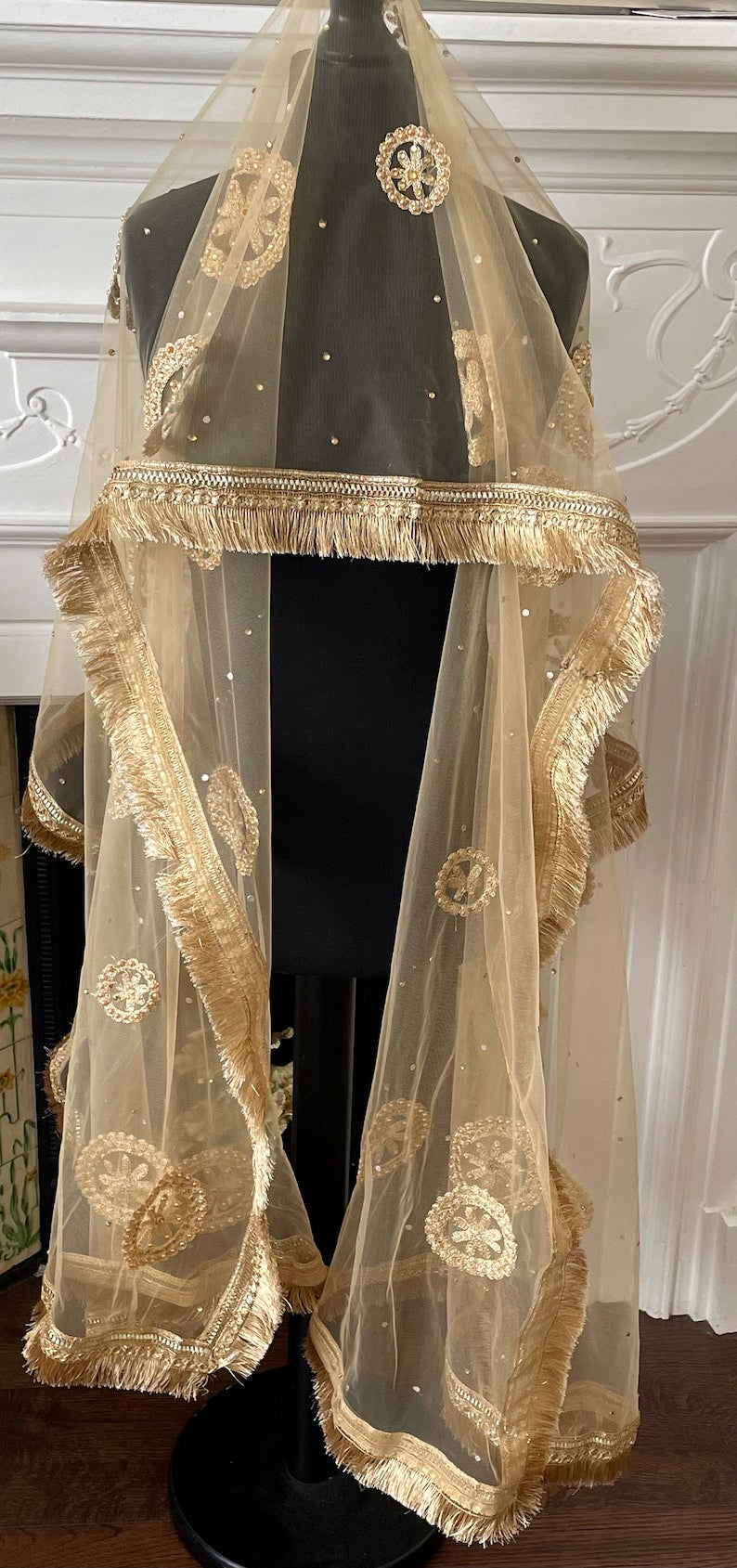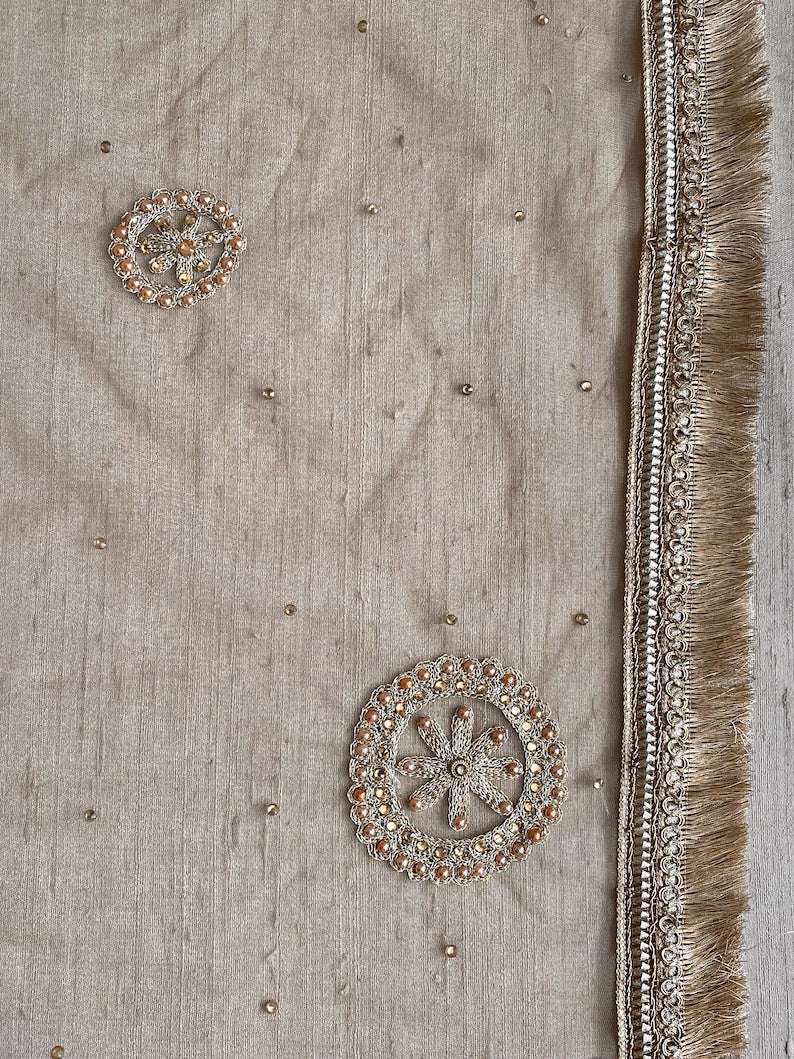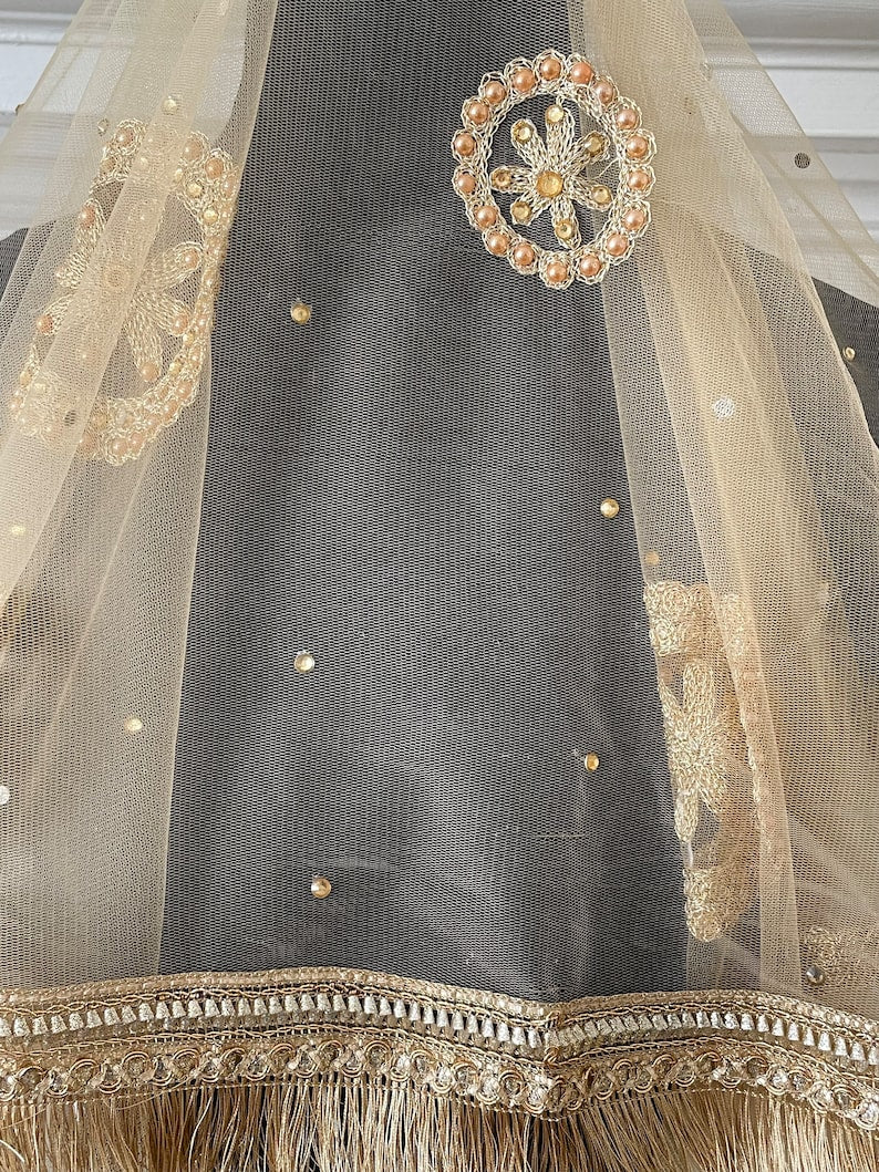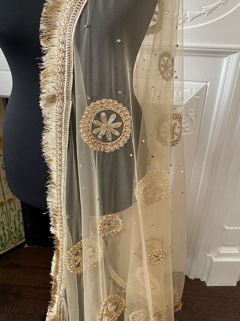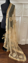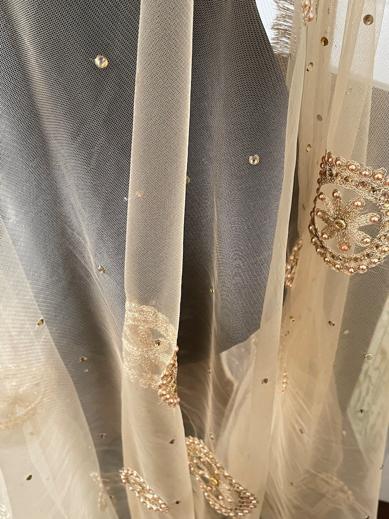 Net Dupatta's - Kiran Border on all four sides, pearls champagne coloured circular motifs