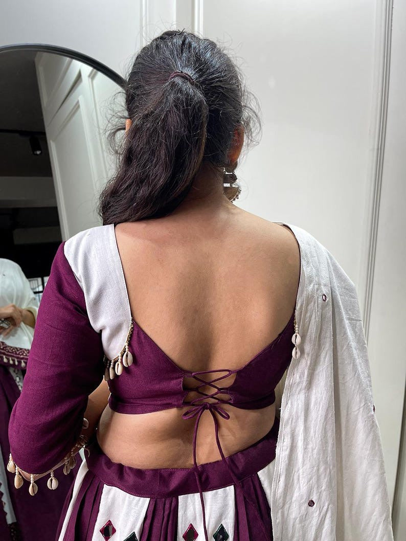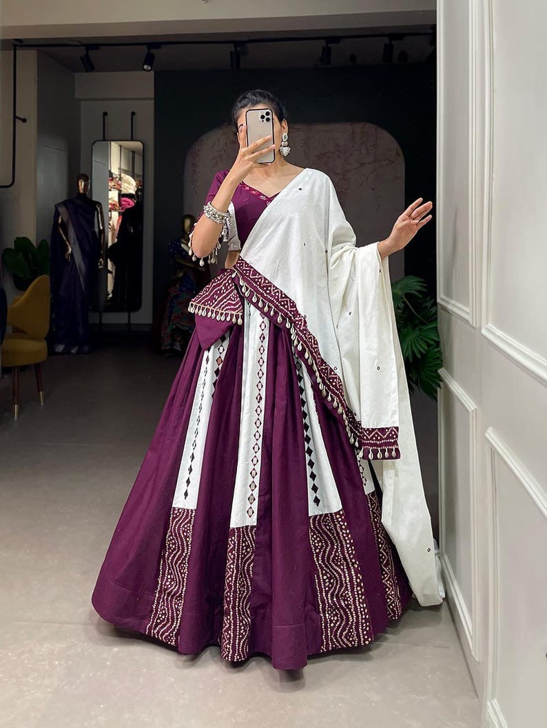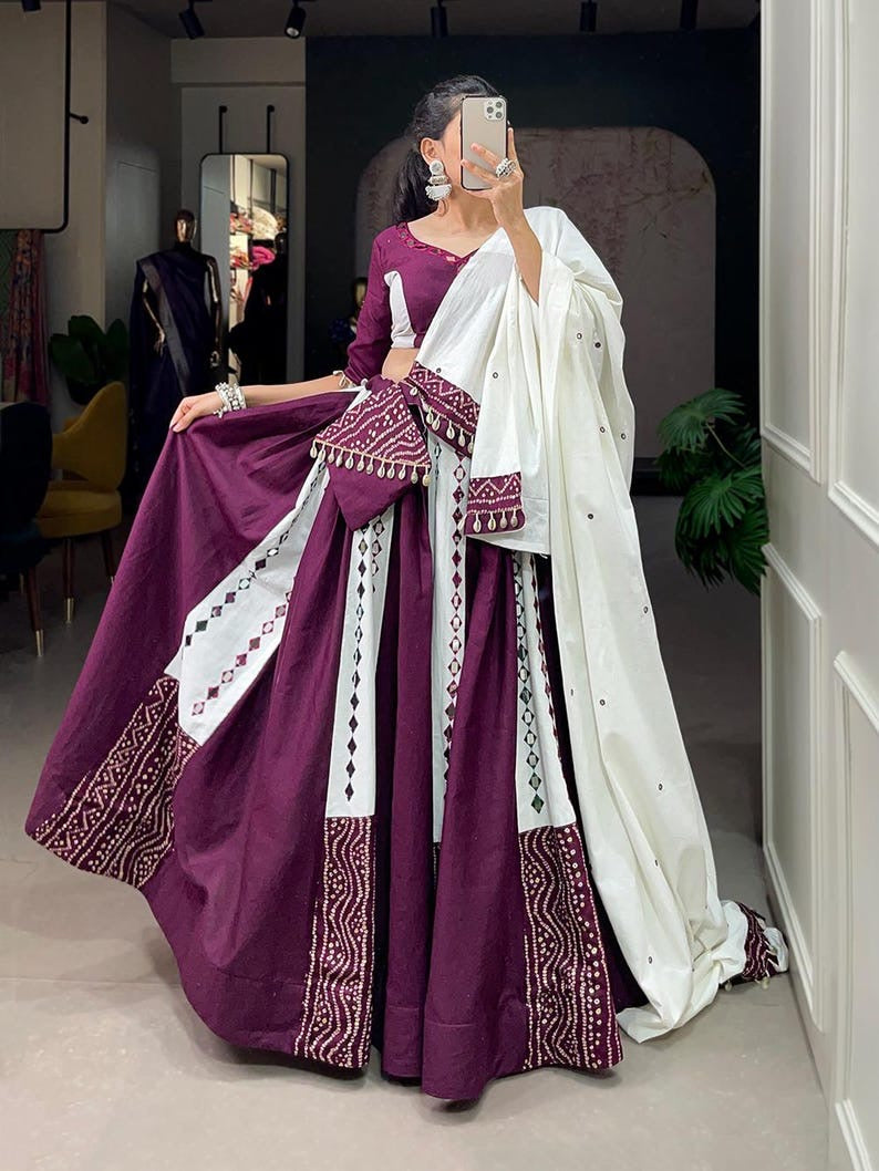 Gorgeous Dual Color Kali Style Cotton Chaniya Choli with Mirror Work