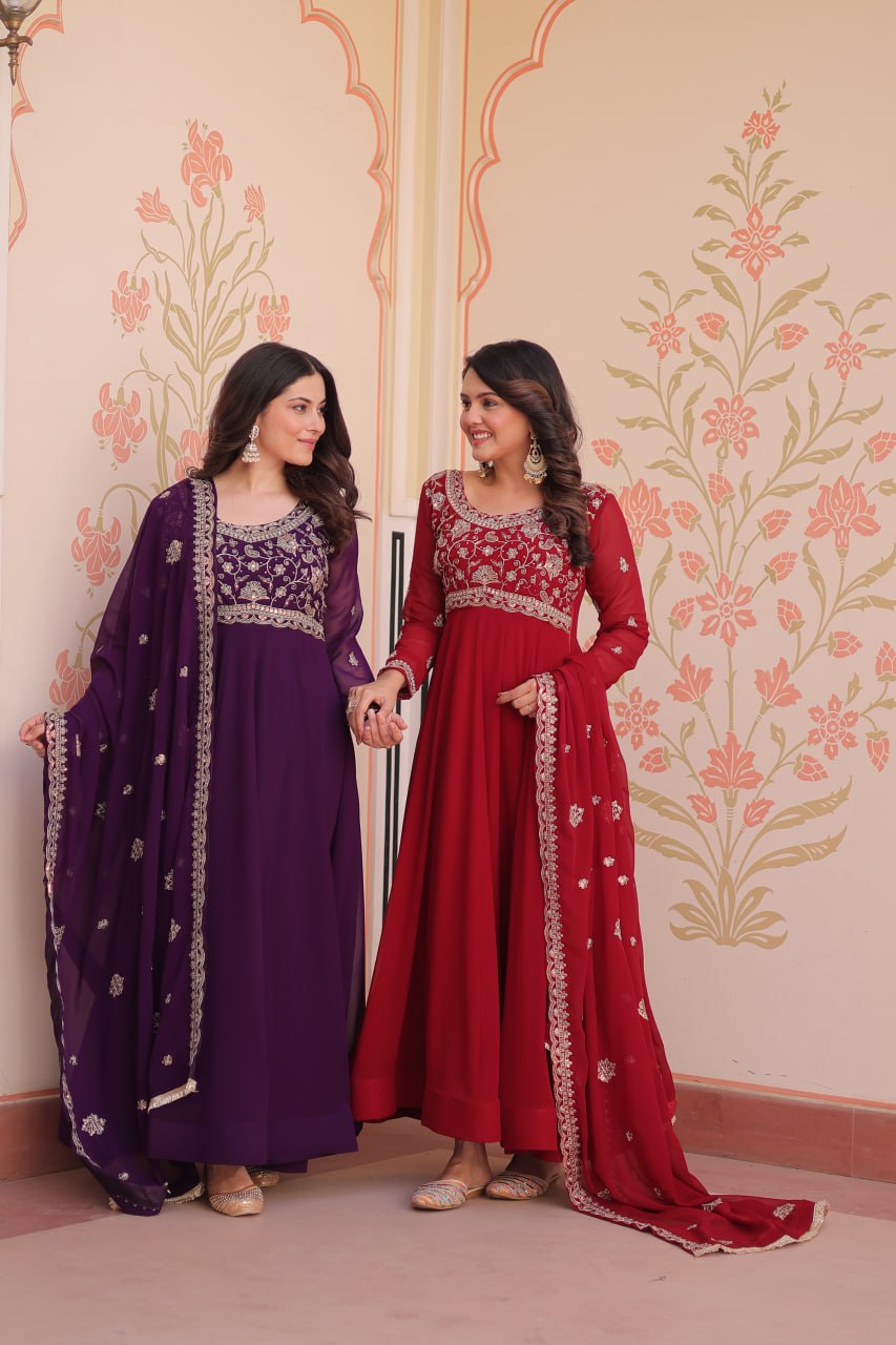 ππ» FABRIC & WORK :- Faux Blooming with Beads embroidery-work and designer lace border