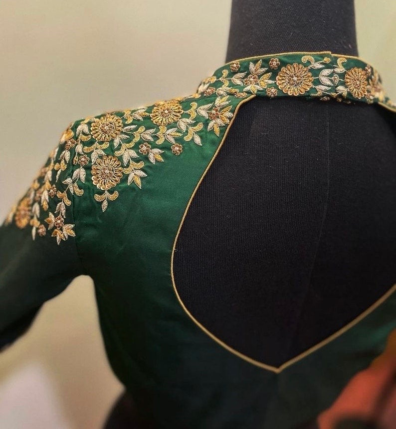 Neck : front leaf neck about 9 inch, back high collar neck with embroidery