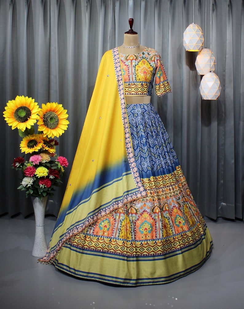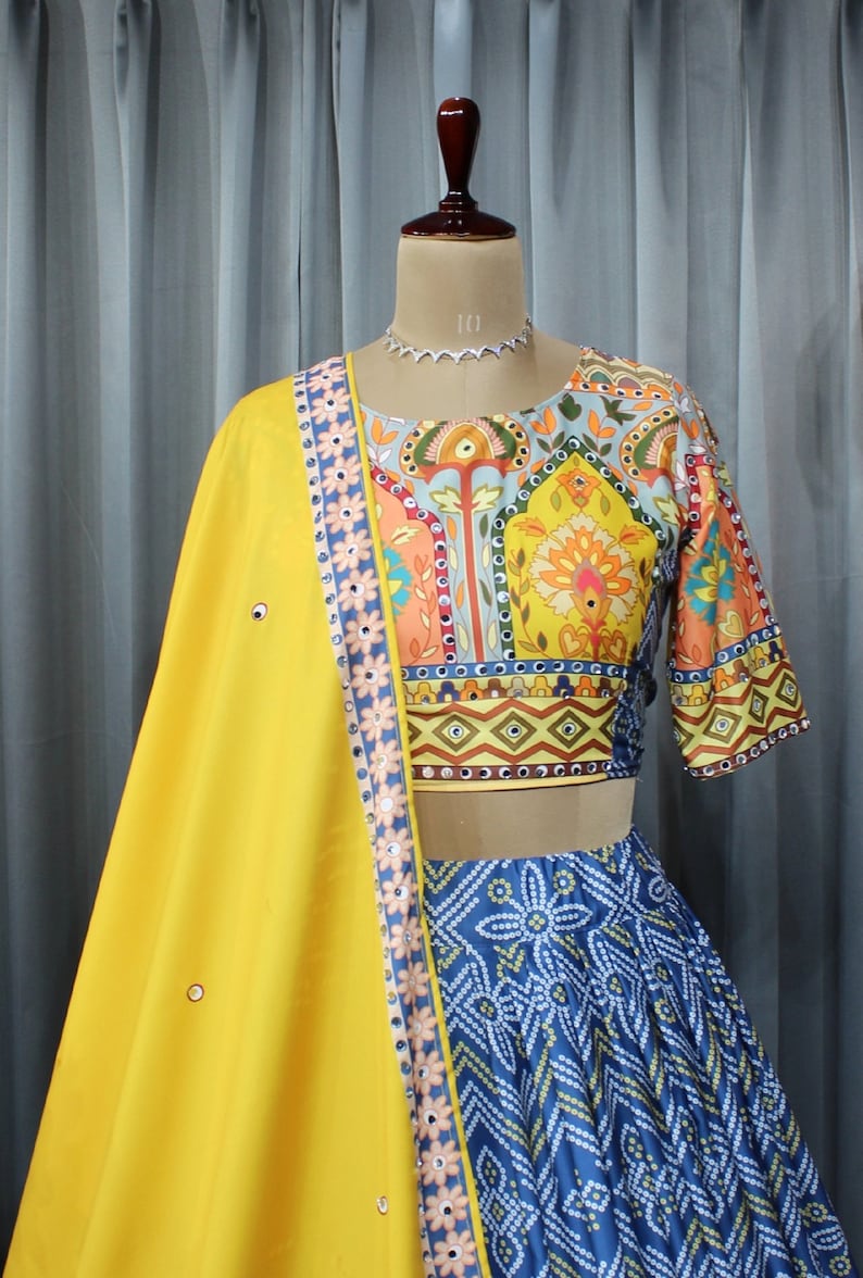 - Work: Fancy Digital Print Work & Real Mirror Work, complementing the lehenga's design.