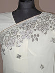 Indian Off-White Faux Georgette Handwork Saree with Metallic Thread Work
