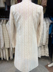 All over work over the sherwani is done with cotton thread and resham and the highlighting makes the entire piece sober and sophisticated