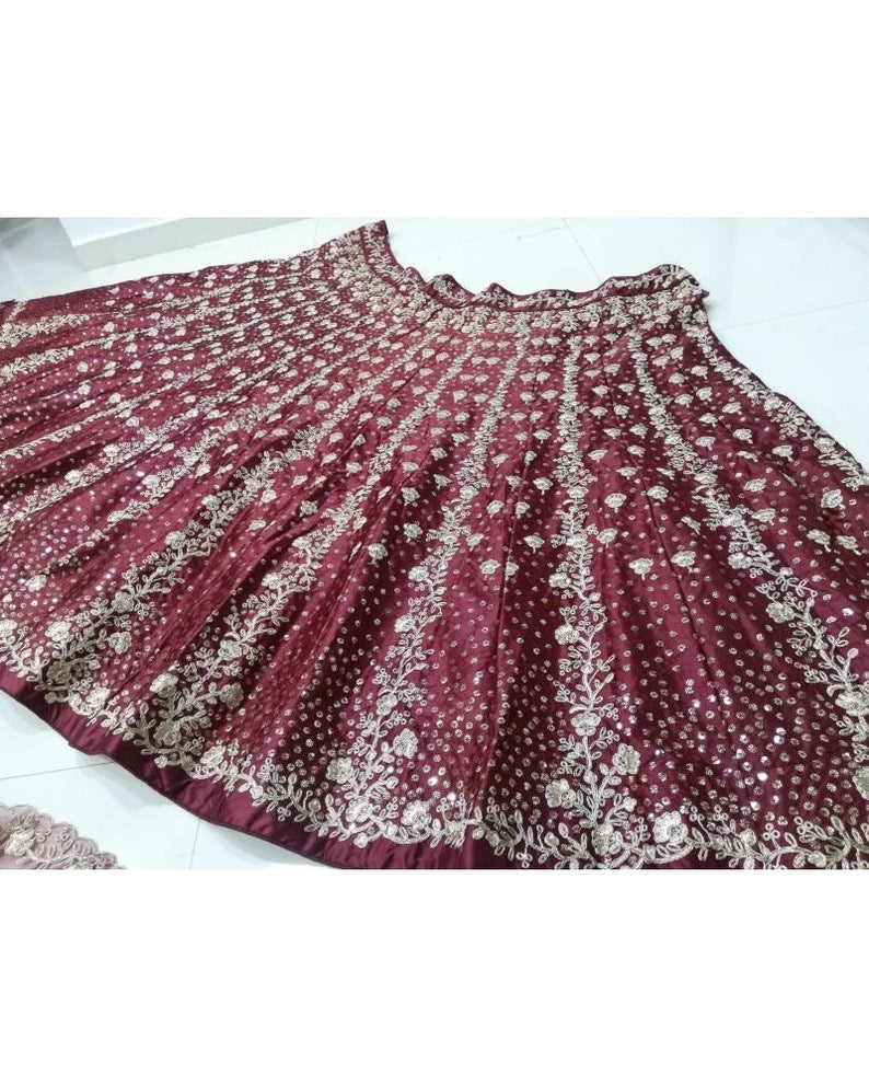 | Mulberry silk lehnga with paper mirror work And zari work all over |
