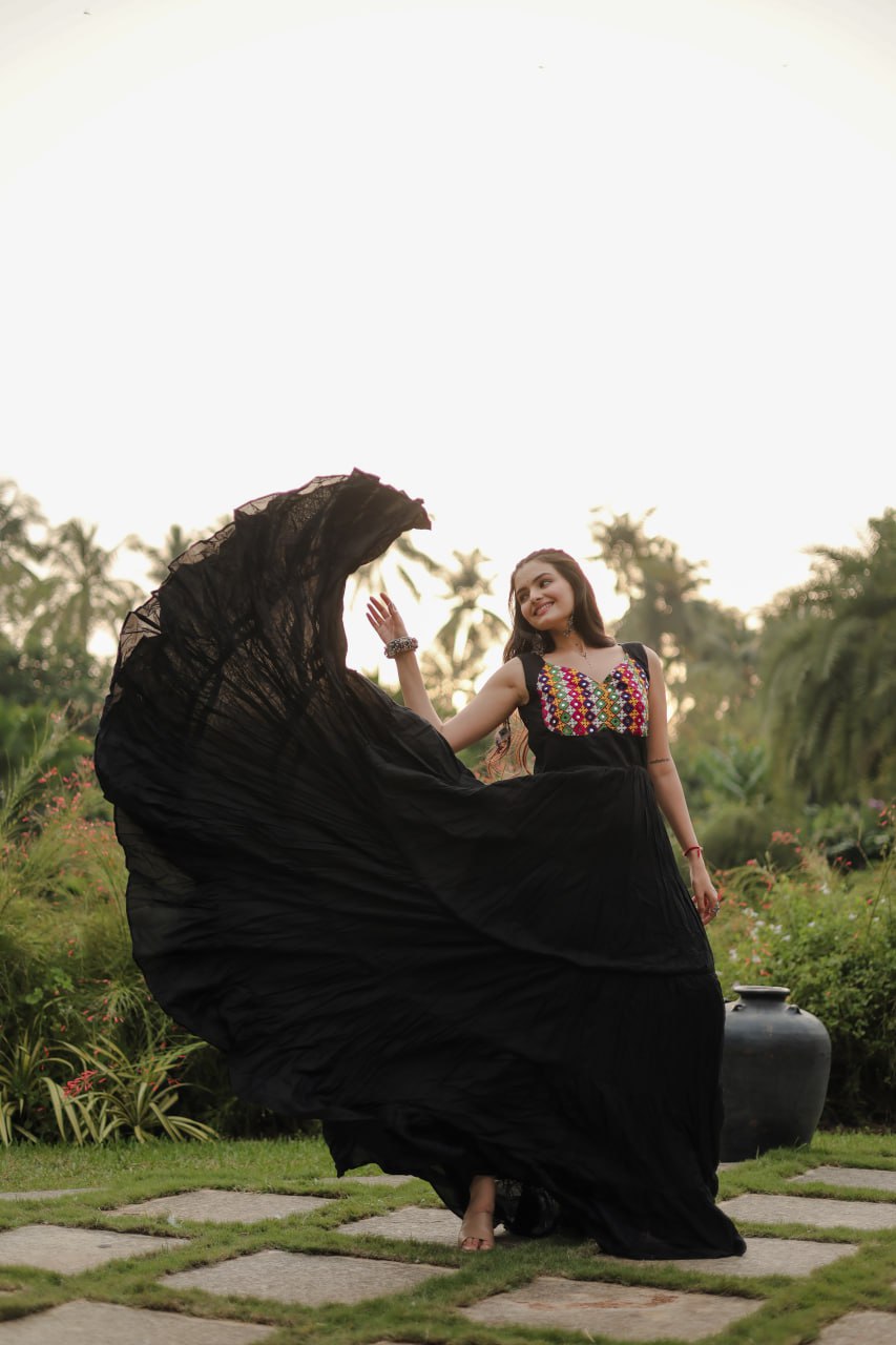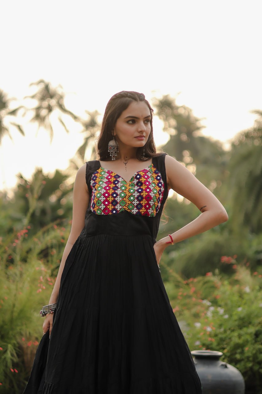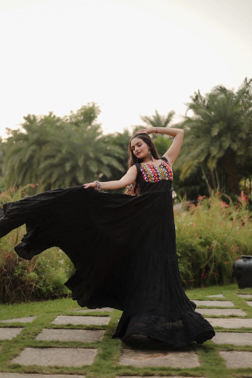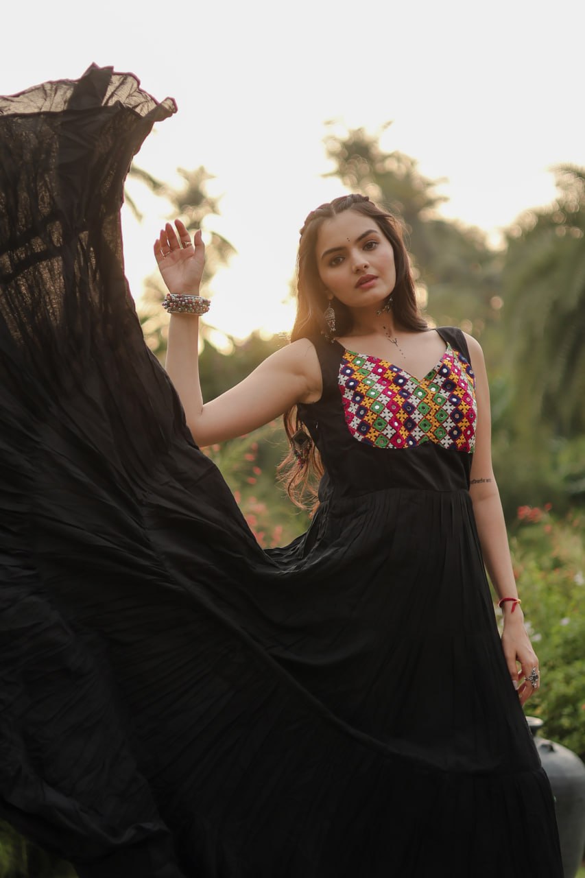 Navaratri Collection Black Colour Reyon Fabric with Kutchi Gamthi Work