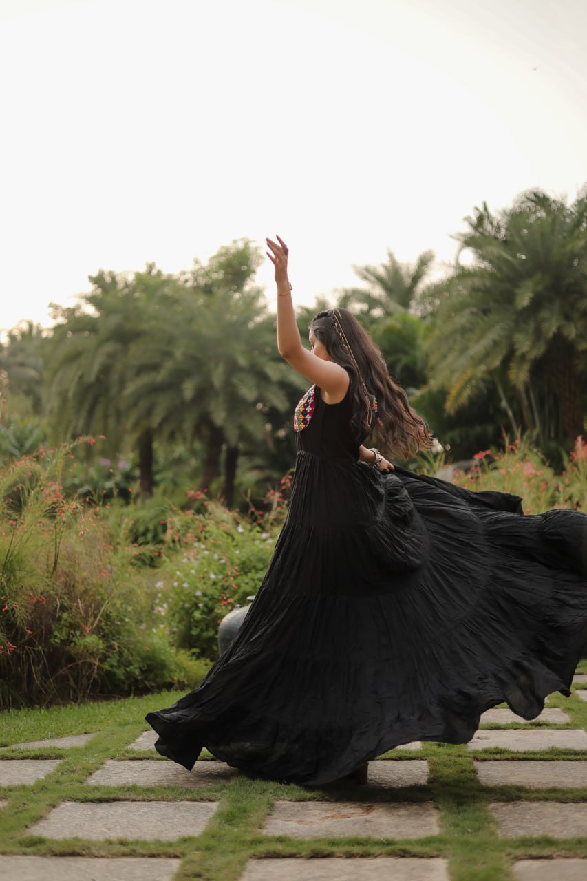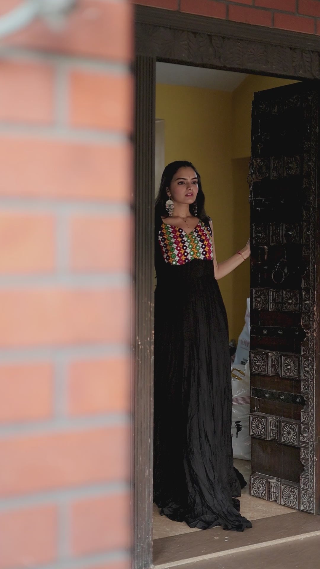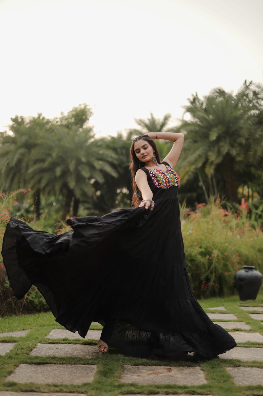 Navaratri Collection Black Colour Reyon Fabric with Kutchi Gamthi Work