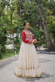 ๐๐ป Fabric & Work :- Roman silk with ย Kutchi Gamthi Embroidered Work & Mirror lace workย
