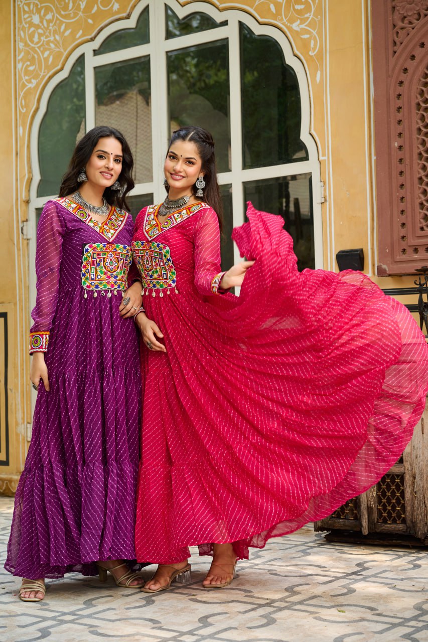 ππ» *Fabrics & Work :-* Laheriya Print work with kutchi patchework in Faux Georgette.