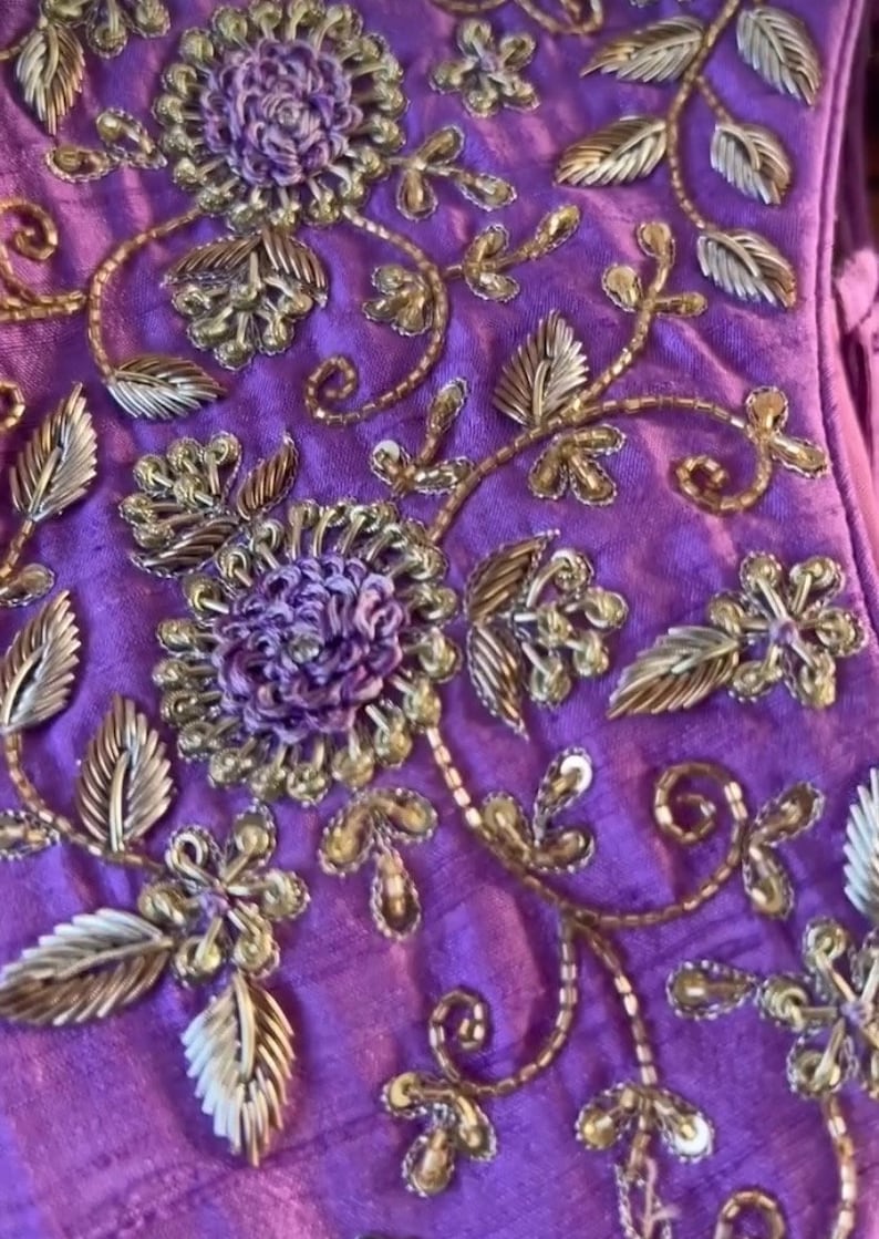 Front Neck: deep curved neck about 8 inch deep with hand embroidery
