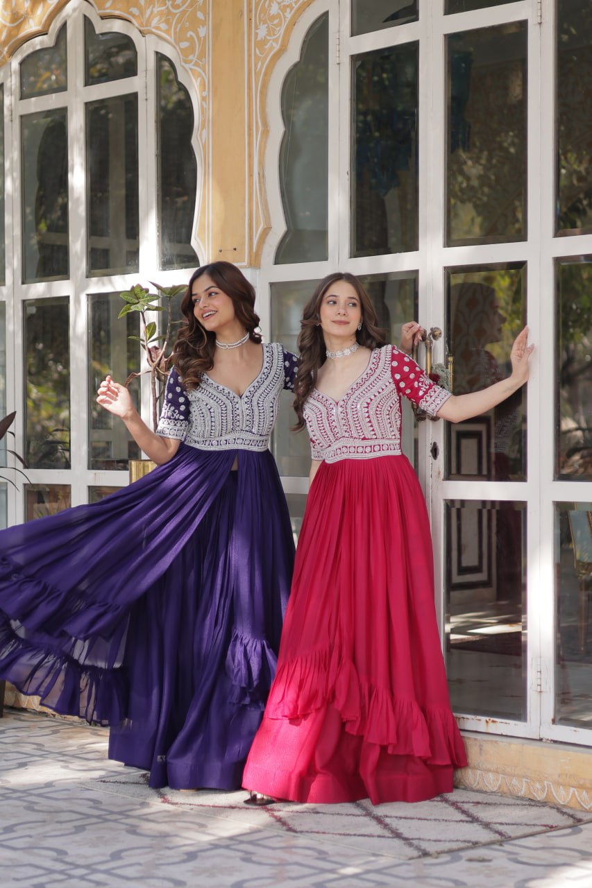 Lehenga With Readymade Slit Cut Long Kurti Set