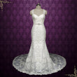 This exquisite mermaid wedding dress is fabricated with luxurious European lace and a fitted silhouette to create an elegant and sexy look. The keyhole back detail adds a wow factor for any special occasion.