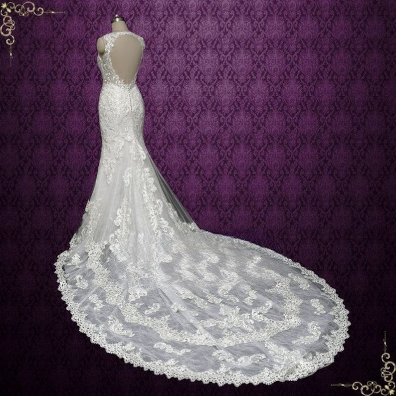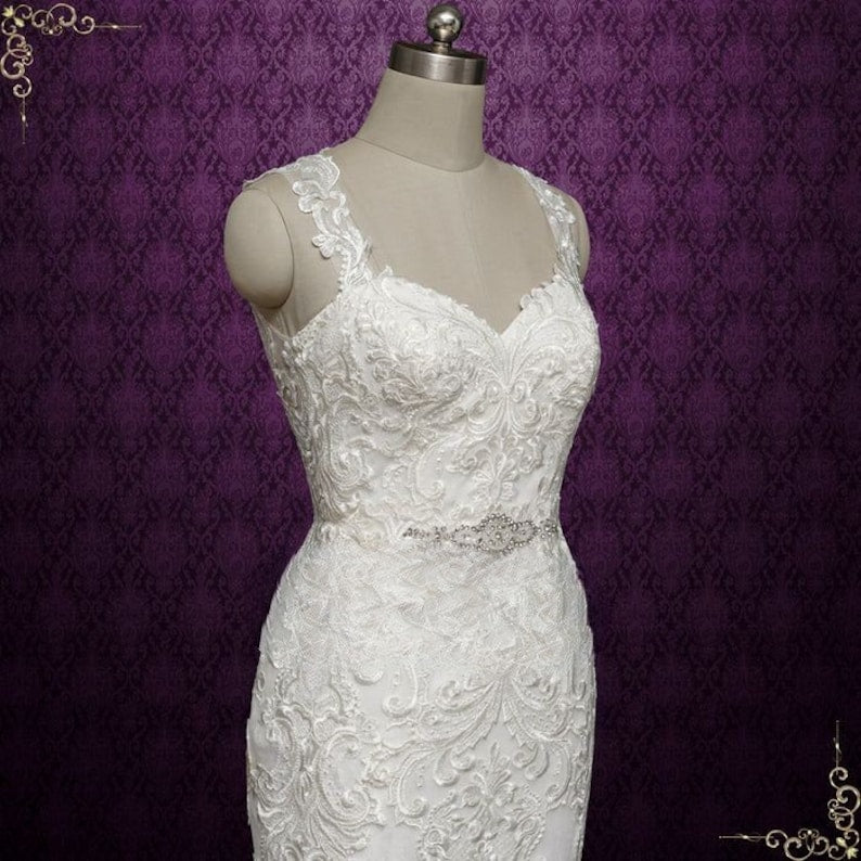 Luxurious Lace Fitted Mermaid Wedding Dress with Keyhole