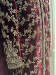 On your special day, wear our Pure Maroon Velvet Sherwani to look like a queen. The exquisite shaffon silk velvet is adorned with hand-stitched zardozi decorations, which combine elegance and sophistication to create a captivating blend. Your distinctive dark maroon colour makes you stand out.