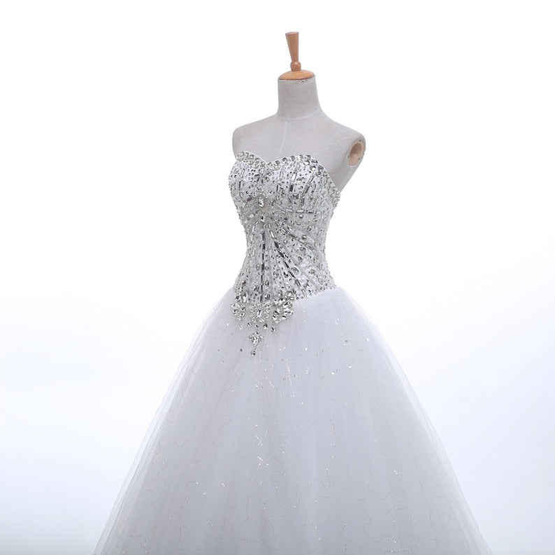 Luxury Pearls a Line Shiny Wedding Gown Sweetheart Corset Wedding Dress