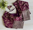 Maroon Brocade Embroidery Pattern Ready Made Designer Saree Blouse