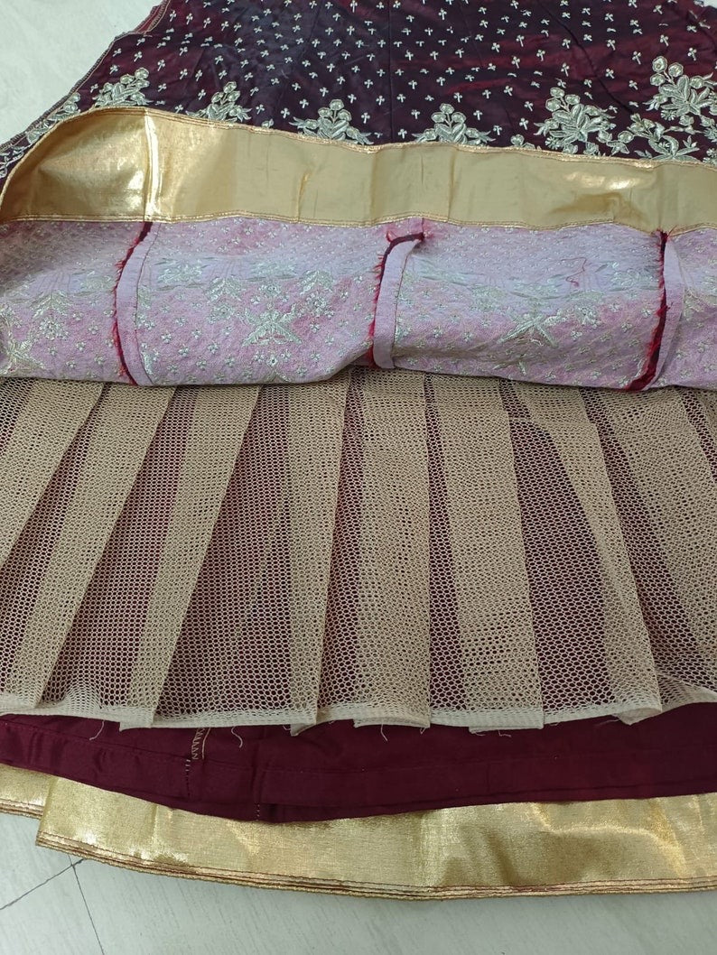 Material composition - Tafeta Satin Silk fabric in Lehenga & choliFinish type - Semi-stitchedPattern - EmbroideredCare instructions - Hand Wash OnlyDesign name - DesignerOccasion type - Wedding, Party, Ceremony, EthnicCountry of Origin - India