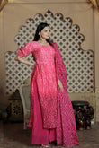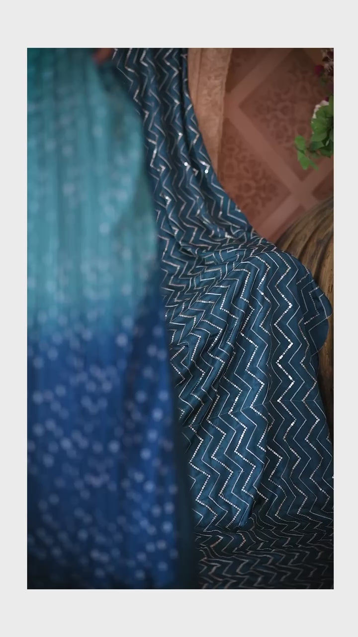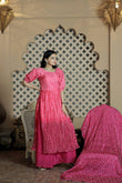 Maslin crochet With rich digital Print on top & Chinnon Floral print with Crush Pleating