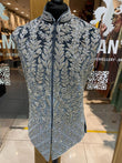 Men's Grey Heavy Hand Embroidery Nehru Jacket