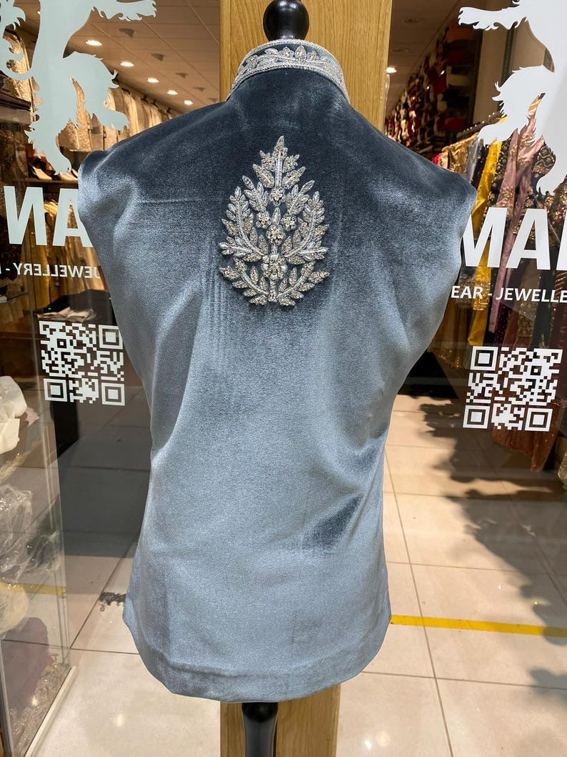 Introducing our Grey Heavy Waistcoat – a meticulously handcrafted piece that seamlessly blends traditional Indian craftsmanship with contemporary style. This waistcoat is a timeless addition to your wardrobe, showcasing an elegant grey hue that exudes sophistication and versatility.