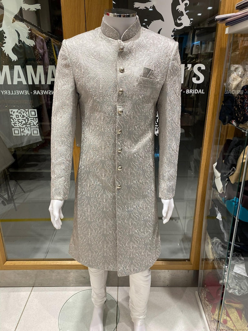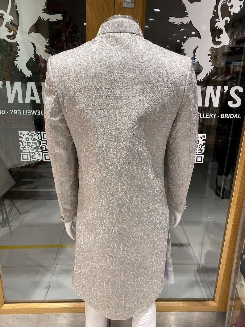 The sherwani is a symbol of regal elegance and tradition, a timeless outfit that has been worn by men for centuries during momentous occasions. This sophisticated attire embodies a perfect blend of intricate craftsmanship, rich fabrics, and classic design, making it the ideal choice for weddings, formal events, or grand celebrations.