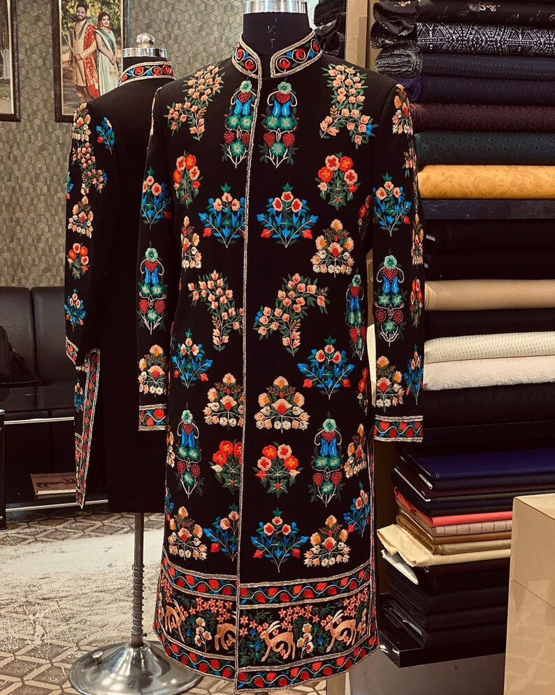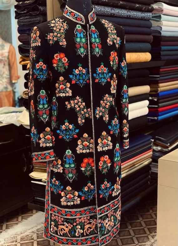 Men’s Indian Latest Design for Black Velvet Indo Western Sherwani