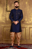 Men's Navy Blue and Rose Gold Silk Blend Sherwani and Dhoti (Set of 2)