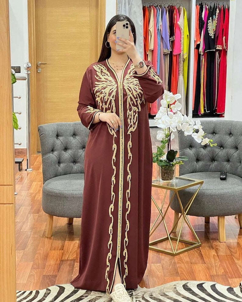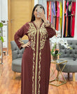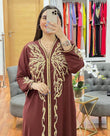 Moroccan Embroidered & Hand Beaded Brown Caftan