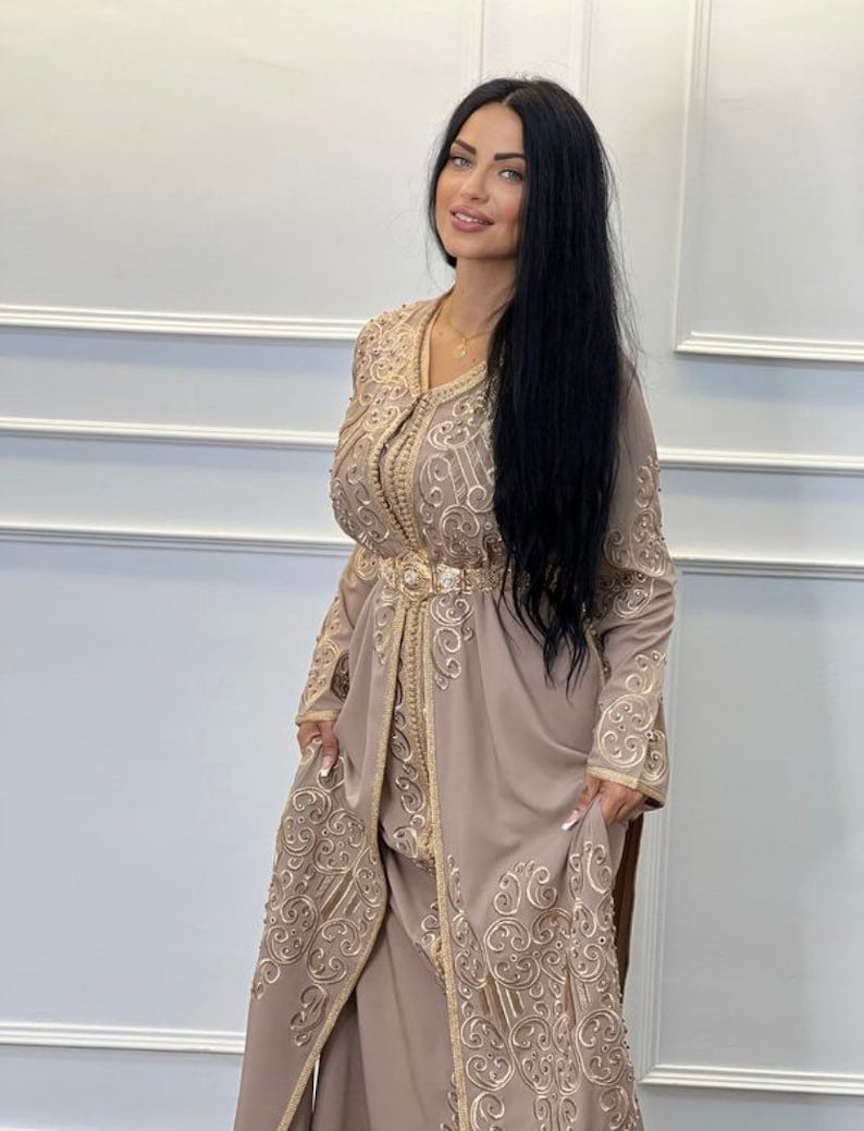 Moroccan Gorgeous Embroidered Caftan 2 pieces , Moroccan Kaftan Abaya, Dubai Gown , Party Dress