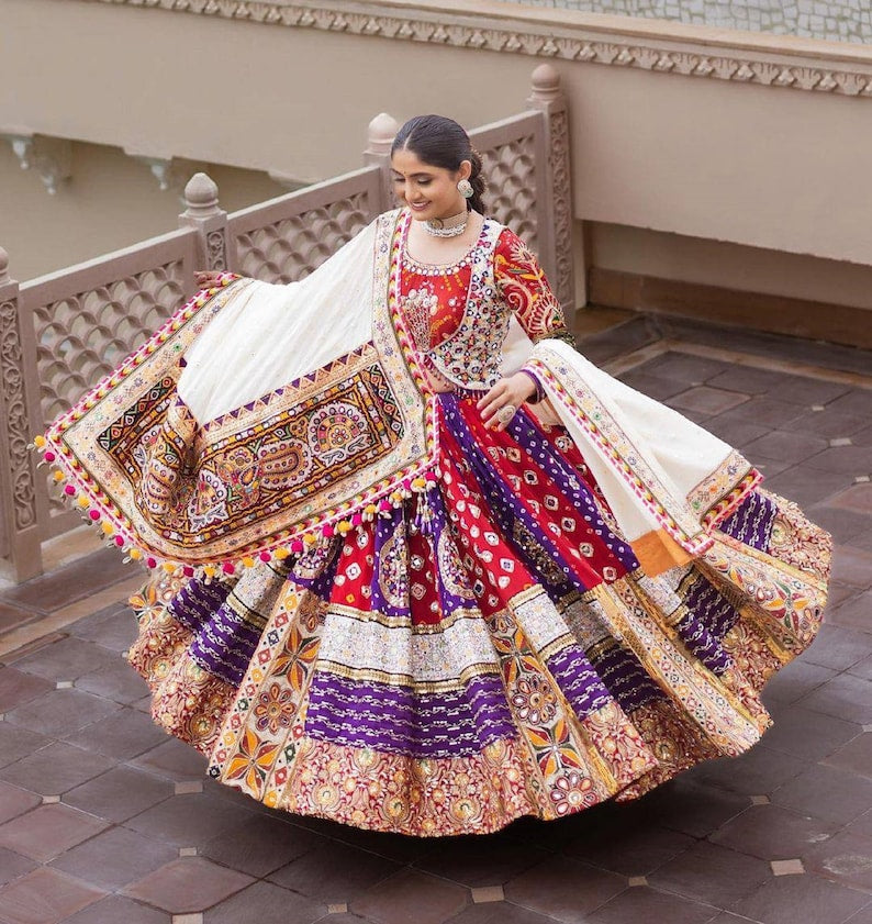 Multi Color Maslin Cotton Digital Print Navratri Lehenga Choli
