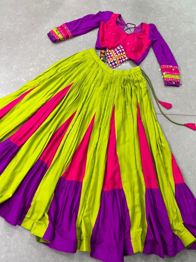 Multi Color Pure Rayon Navratri Lehenga Choli With Patch Work