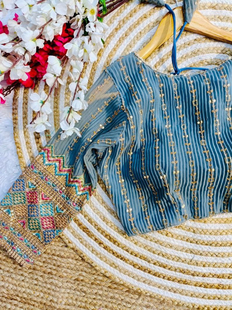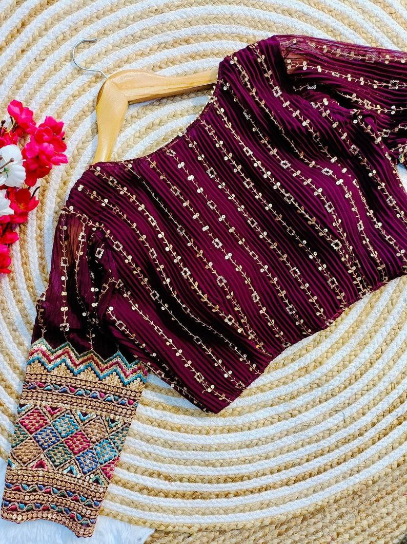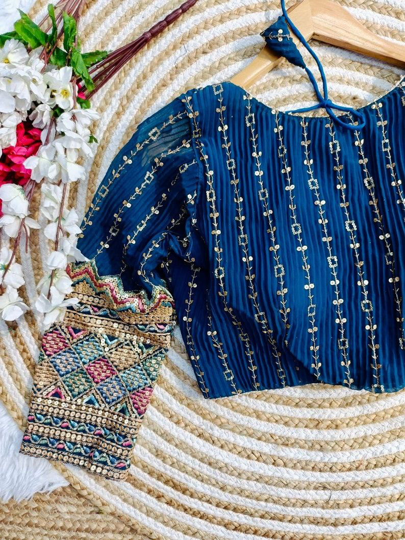 Multi Colour Crush Embroidery Work Blouse