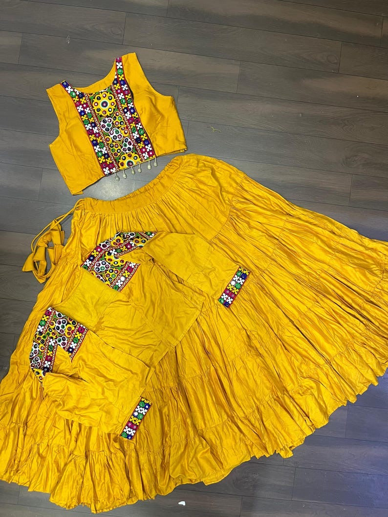 A designer rayon chaniya with blouse and dupatta set combines comfort with style. The chaniya (skirt) typically features a flowing, graceful design in soft rayon fabric, often embellished with eye-catching prints or embroidery.