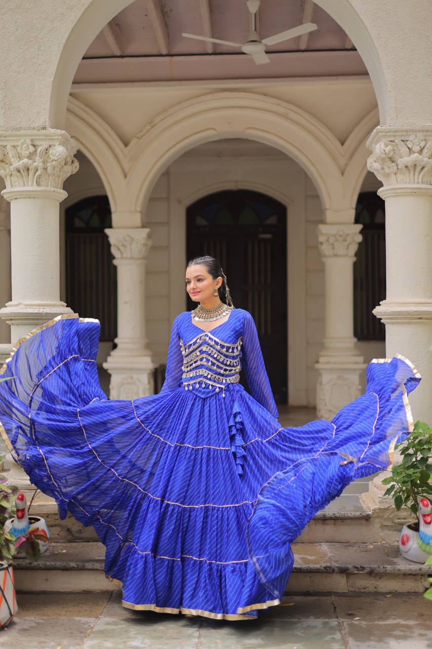 ๐๐ป Fabric & Work :- ย Leheriya Print work With Attractive Gota-Patti Lace