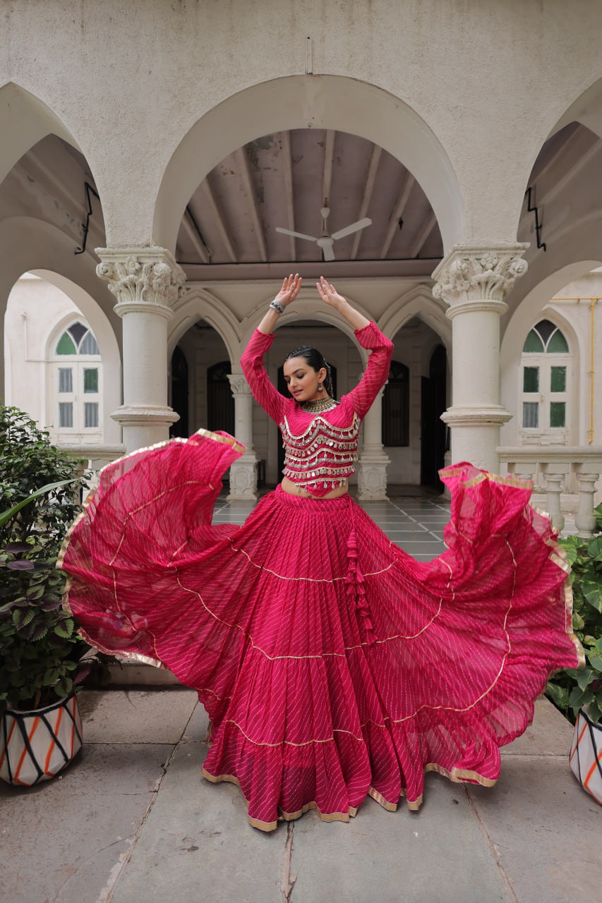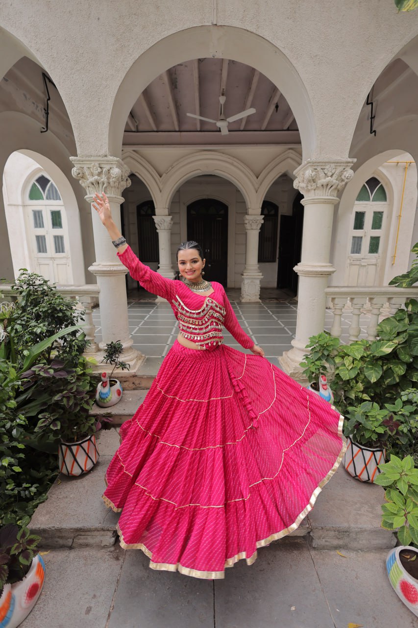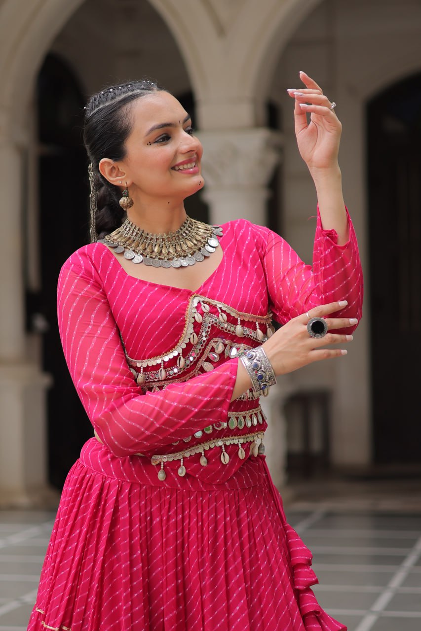 ๐๐ป Fabric & Work :- ย Leheriya Print work With Attractive Gota-Patti Lace