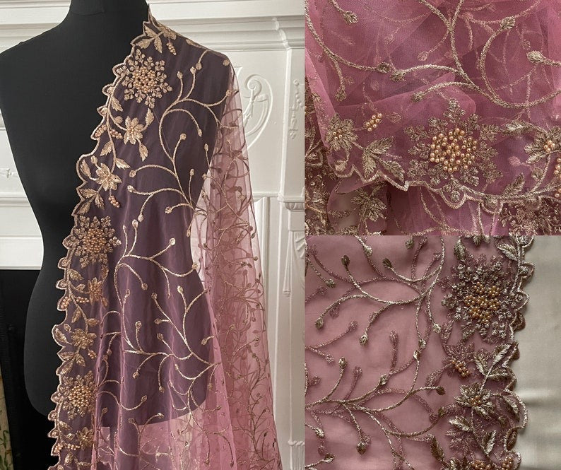 Net Duppattas Pearl and Zari thread work border Scarf Chunni Chunri Odhni update your Salwar Kameez Lehengas Kurtis