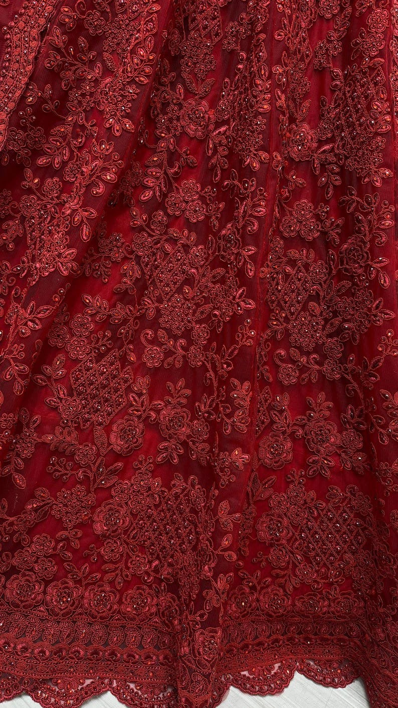 LEHENGA FABRIC : FAUX GEORGETTE WITH 5 MM EMBROIDERY SEQUENCE LACE BORDER (SEMI STITCHED)