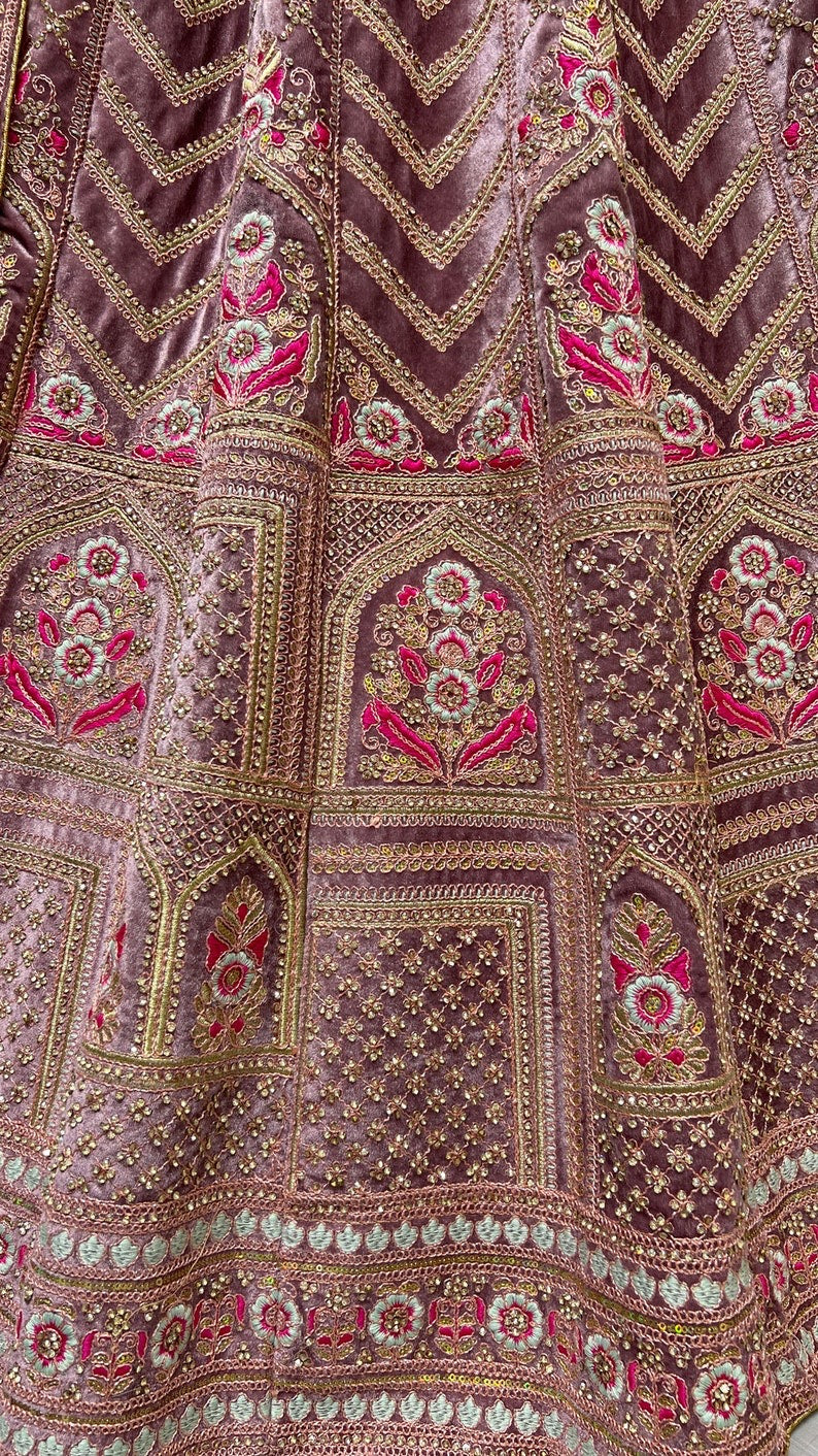 Lehenga: Customizable upto 1.6 M at the waist, Lehenga Flair: 3.5 Meter Lehenga Belt: 68.5 cm . Lehenga length: 1.6 M at the length Choli: Customizable upto 1.6 cm at the Bust