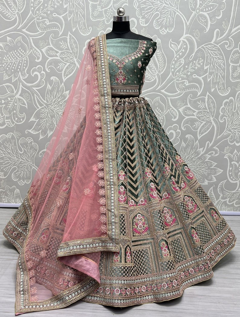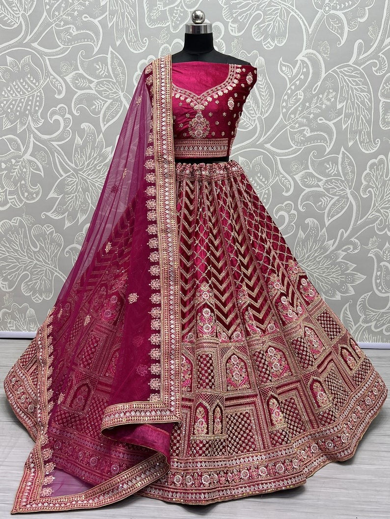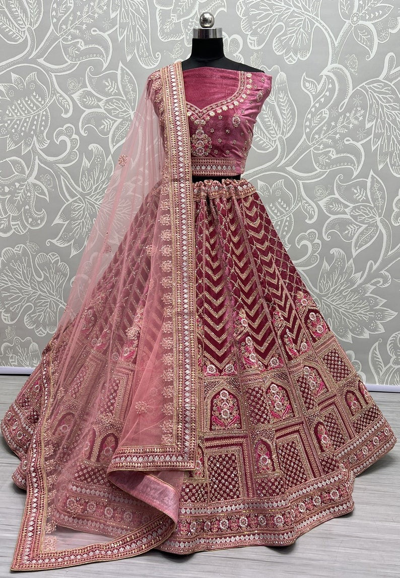 Net Fabric Bridal Lehenga Choli with Embroidery Work In Pink Colour