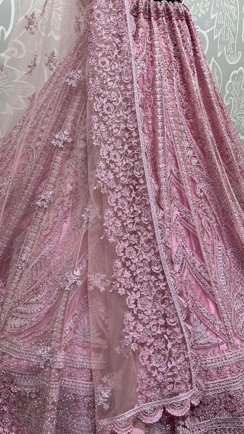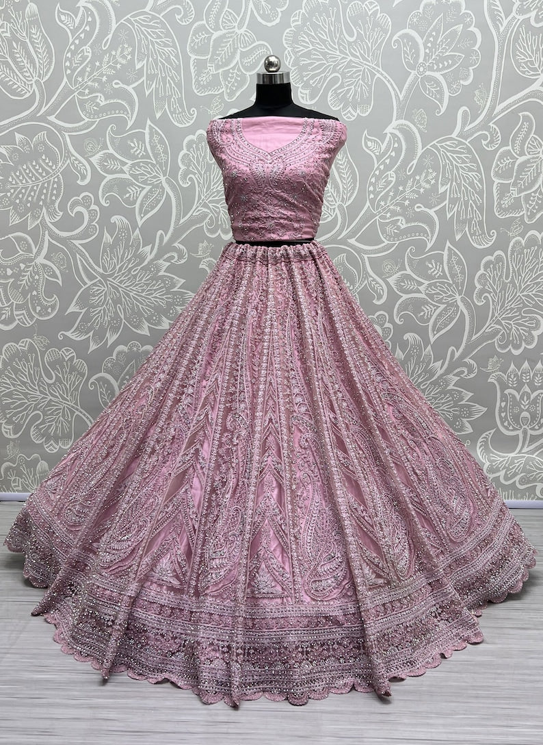 Net Fabric Bridal Lehenga Choli with Embroidery Work In Pink Colour